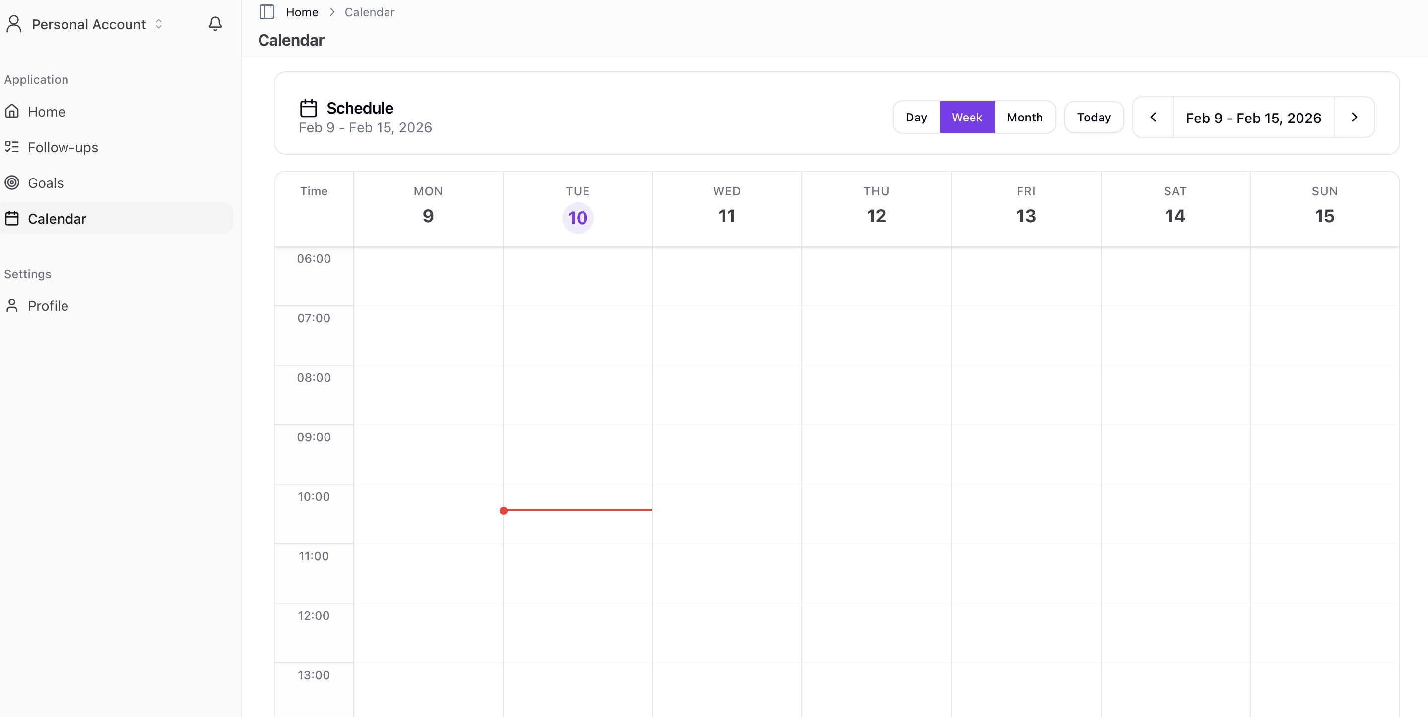 The personal calendar shows your scheduled follow-ups in a visual calendar interface, helping you plan your work day and manage callbacks.