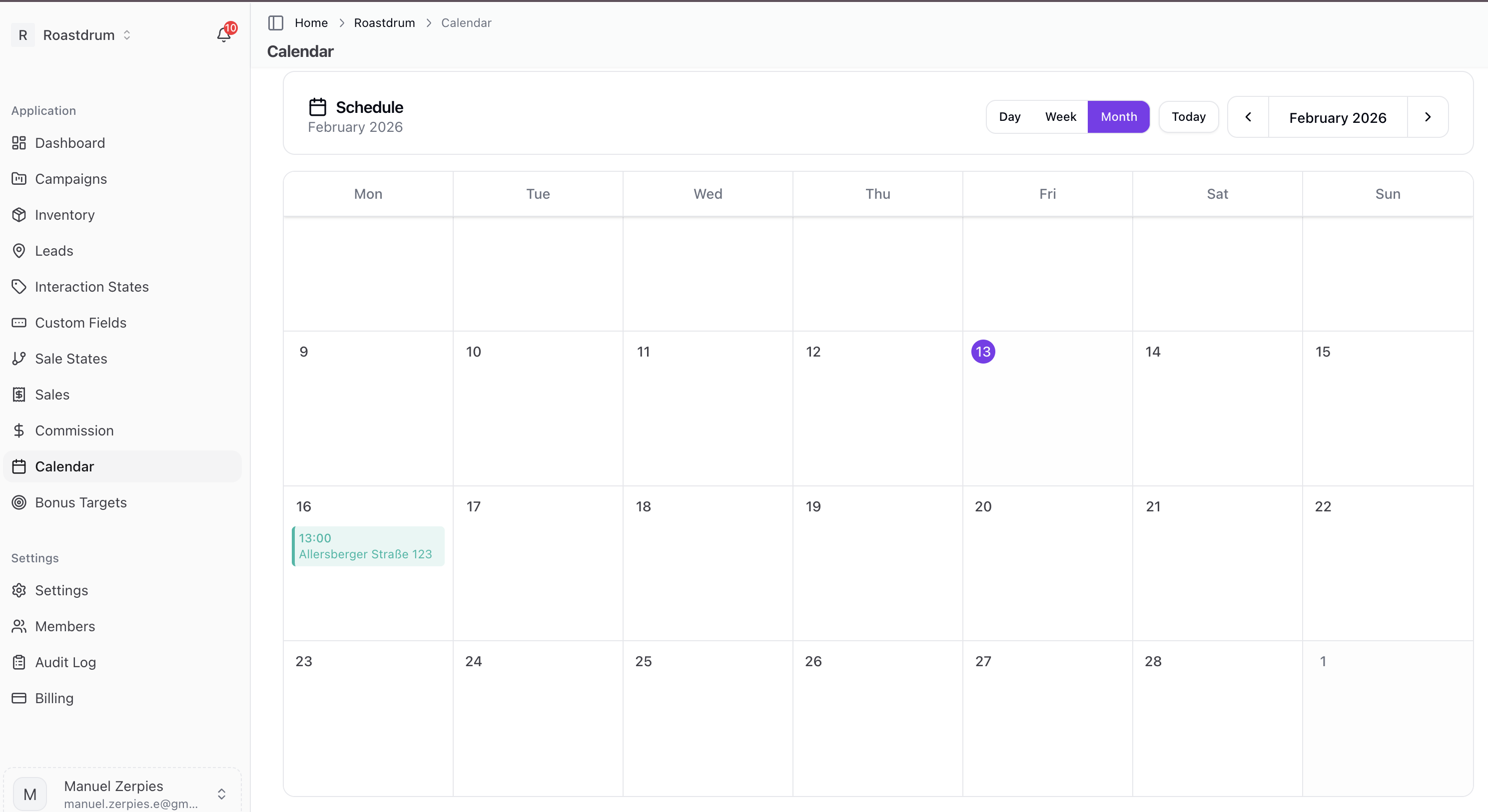 Note: This is not a general-purpose calendar for creating arbitrary events. Follow-ups are created when recording interactions on addresses.