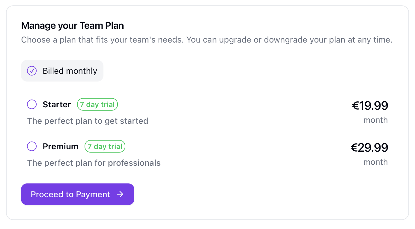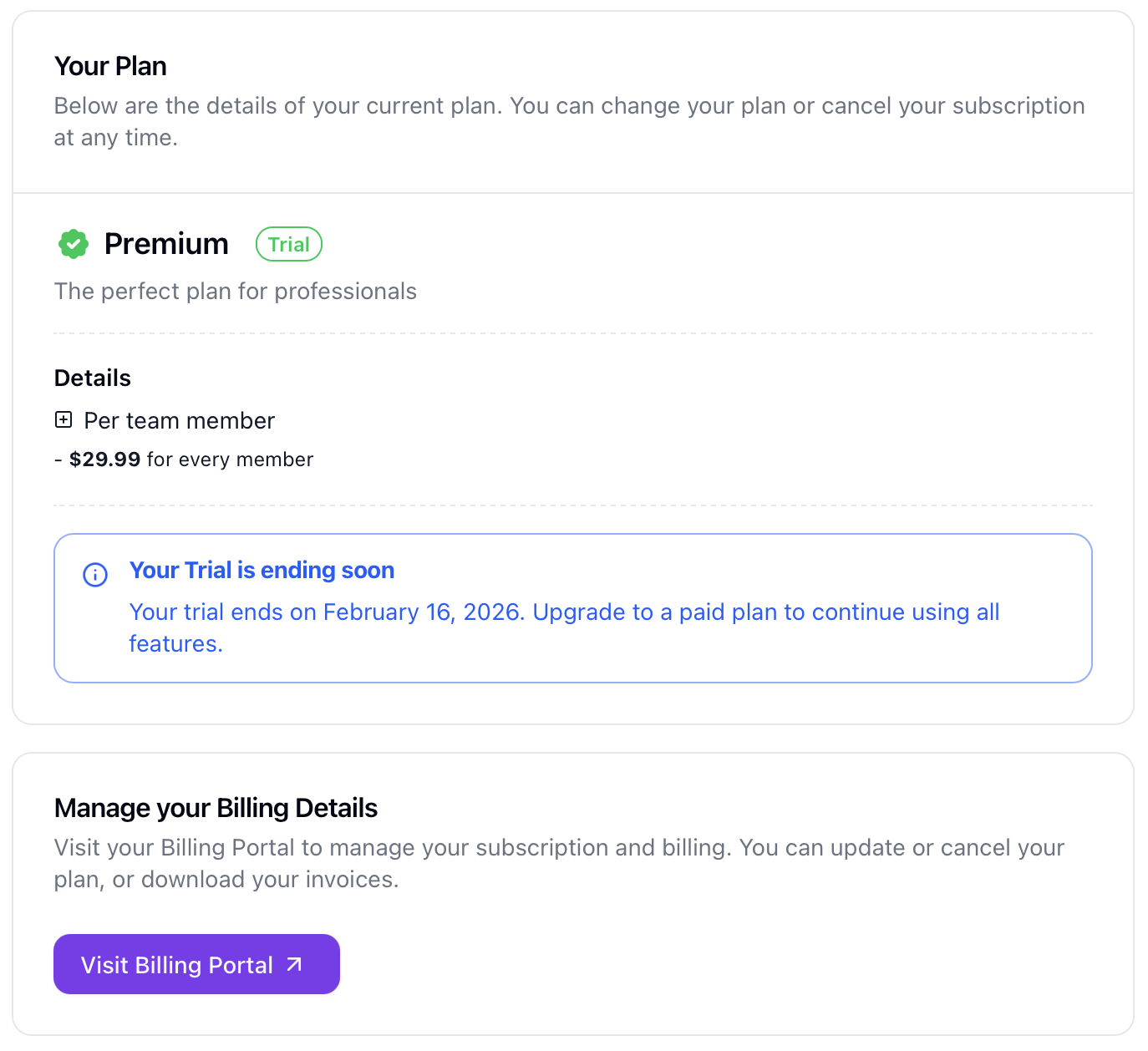 For advanced billing management, use the billing portal: