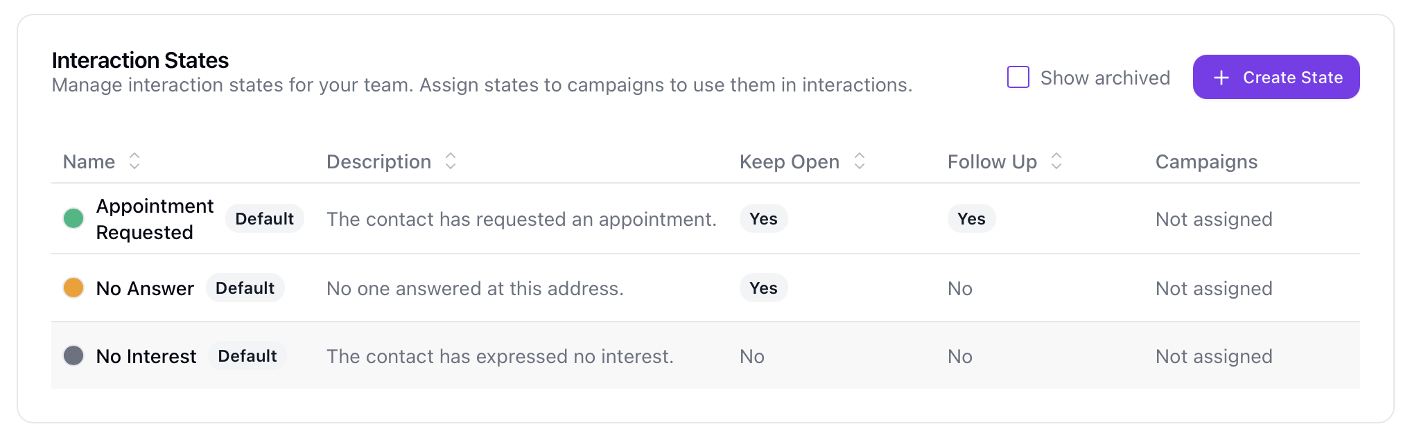 Note: Archived states cannot be assigned to campaigns.