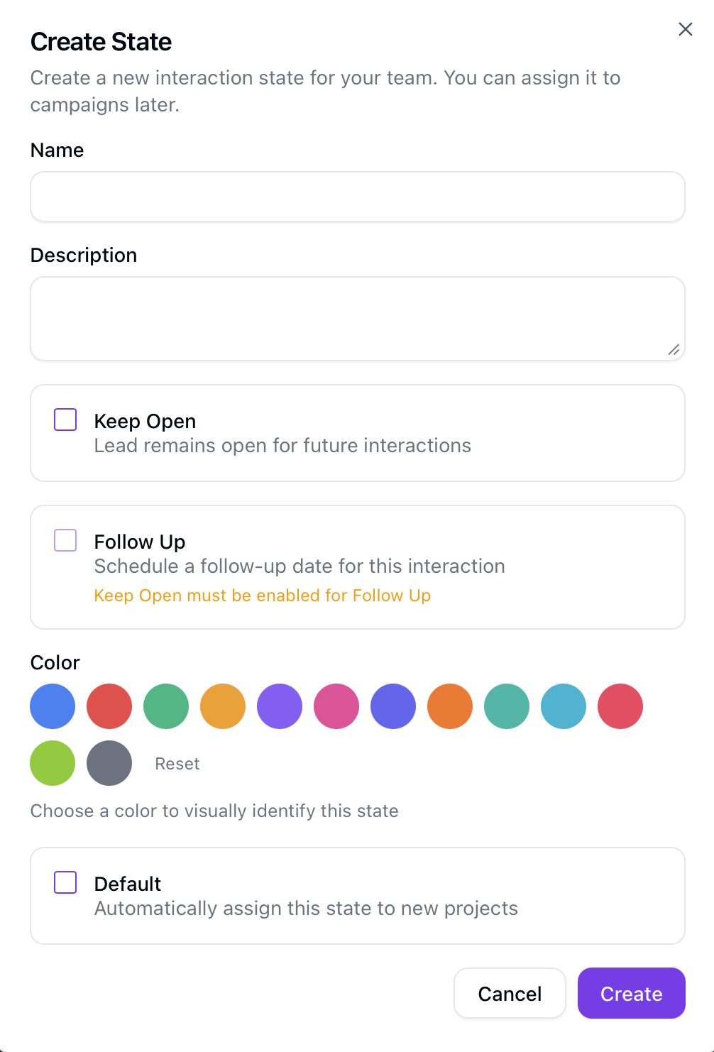 Define and manage the states that leads can be in. States help your team track the progress of interactions with each lead.
