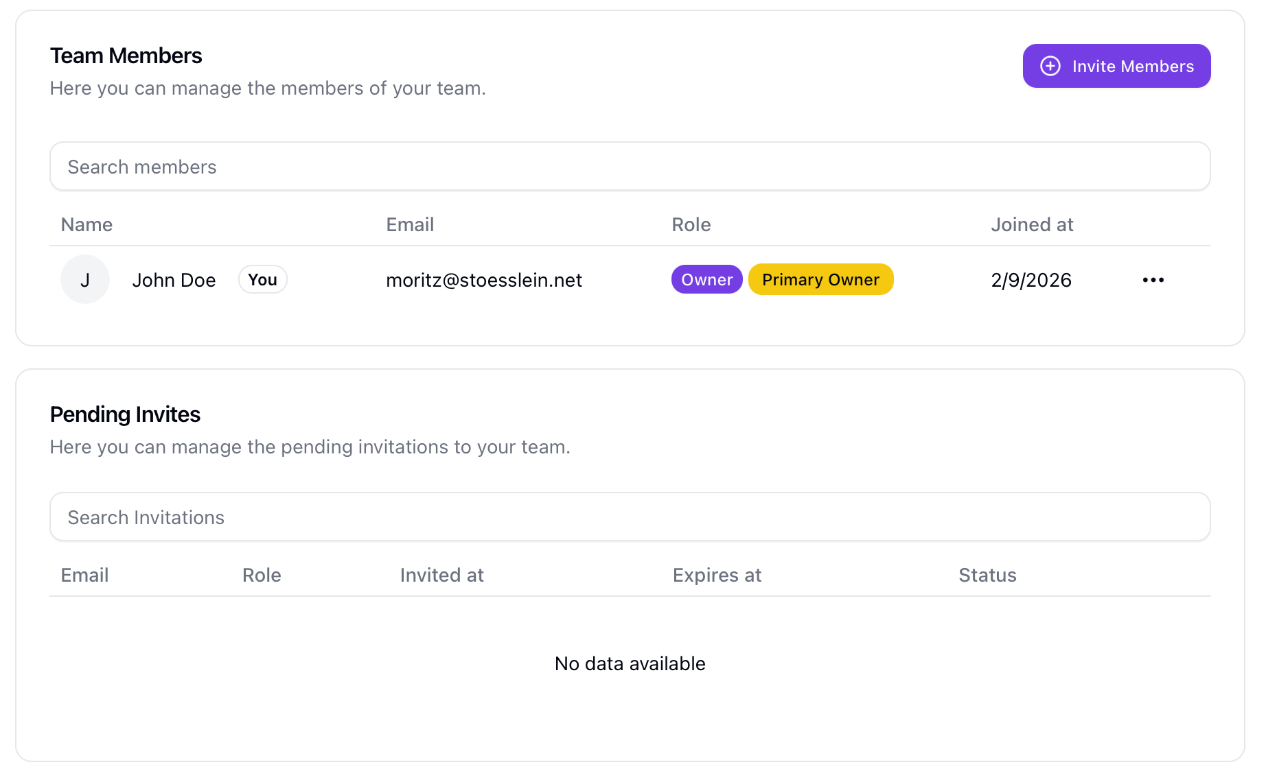 Manage your team members, send invitations, assign roles, and control access permissions.