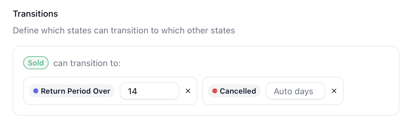 Transitions define which state changes are allowed. For example: