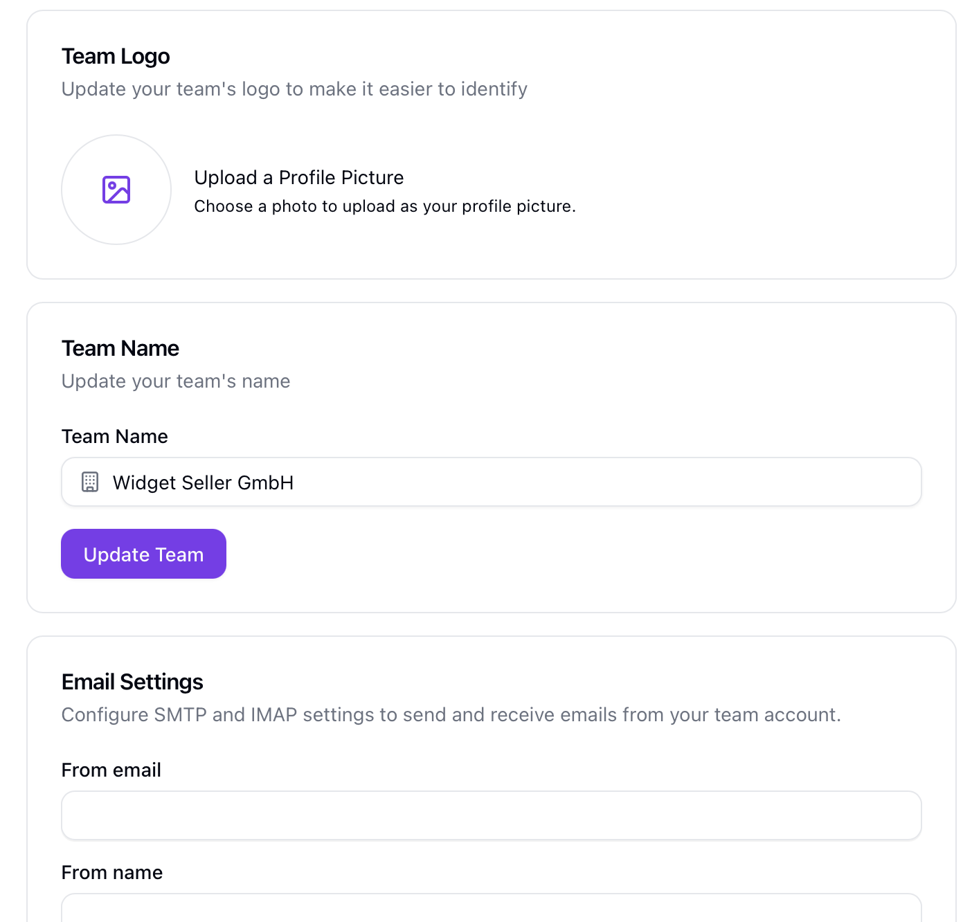 Team Email Settings